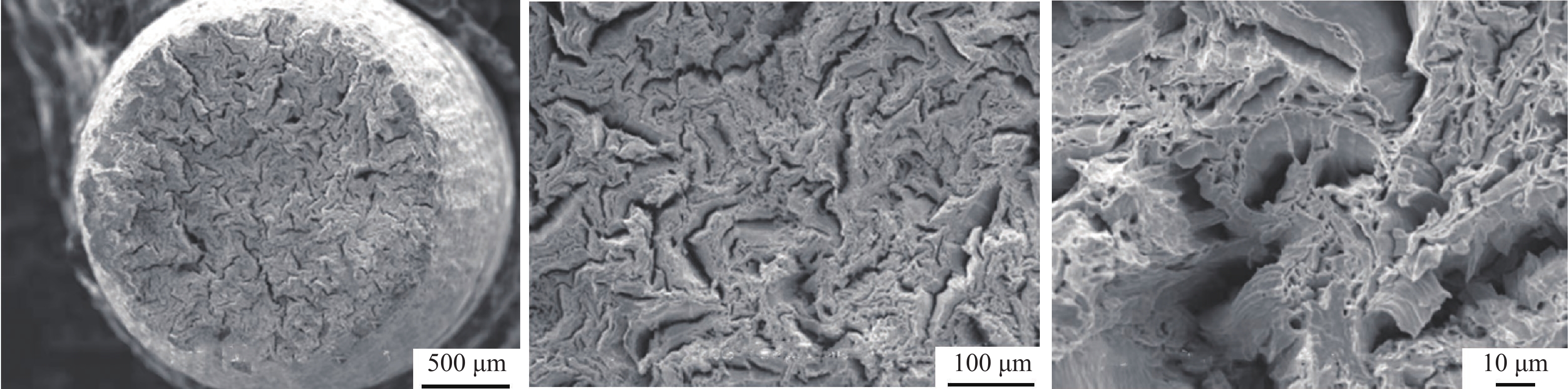 The ablated Mo–La nozzle samples were obtained through the ground thermal test of solid rocket motor. The metallographic structures of the samples before and after ablation was compared and analyzed. The mechanical properties of Mo–La materials were tested at room temperature and 1000 ℃. The results show that the Mo–La nozzles used in solid rocket motor with working time of 2.1 s have the complete inner profile shape, no significant change in size, and good ablation resistance. The metallographic structure before and after ablation reminds the grain recrystallization, especially at the high working temperature position in the middle of nozzle and nozzle, and the morphology changes obviously from the slender fiber to the equiaxed grain. The molybdenum is toughened by the lanthanum oxide particles, the necking and dimple appear on the fracture surface of alloy samples at 1000 ℃ and room temperature, the dimple depth is greater at high temperature, and the tensile strength and elongation decrease.